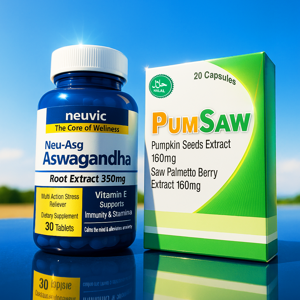 Hormonal pathway control (PUMSAW) + Stress & antioxidant protection (Neu-ASG)