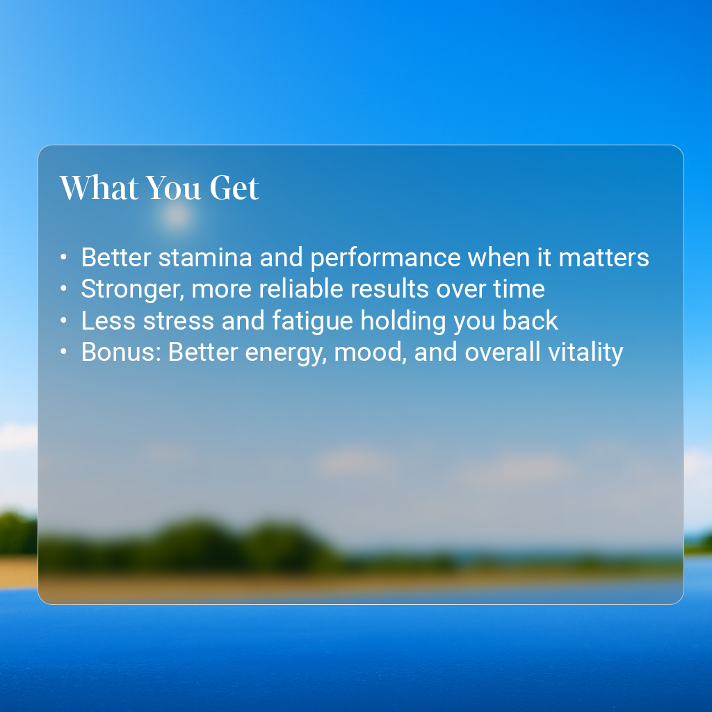 - Long-term hormonal and stress balance (Neu-ASG → testosterone, mood, endurance)